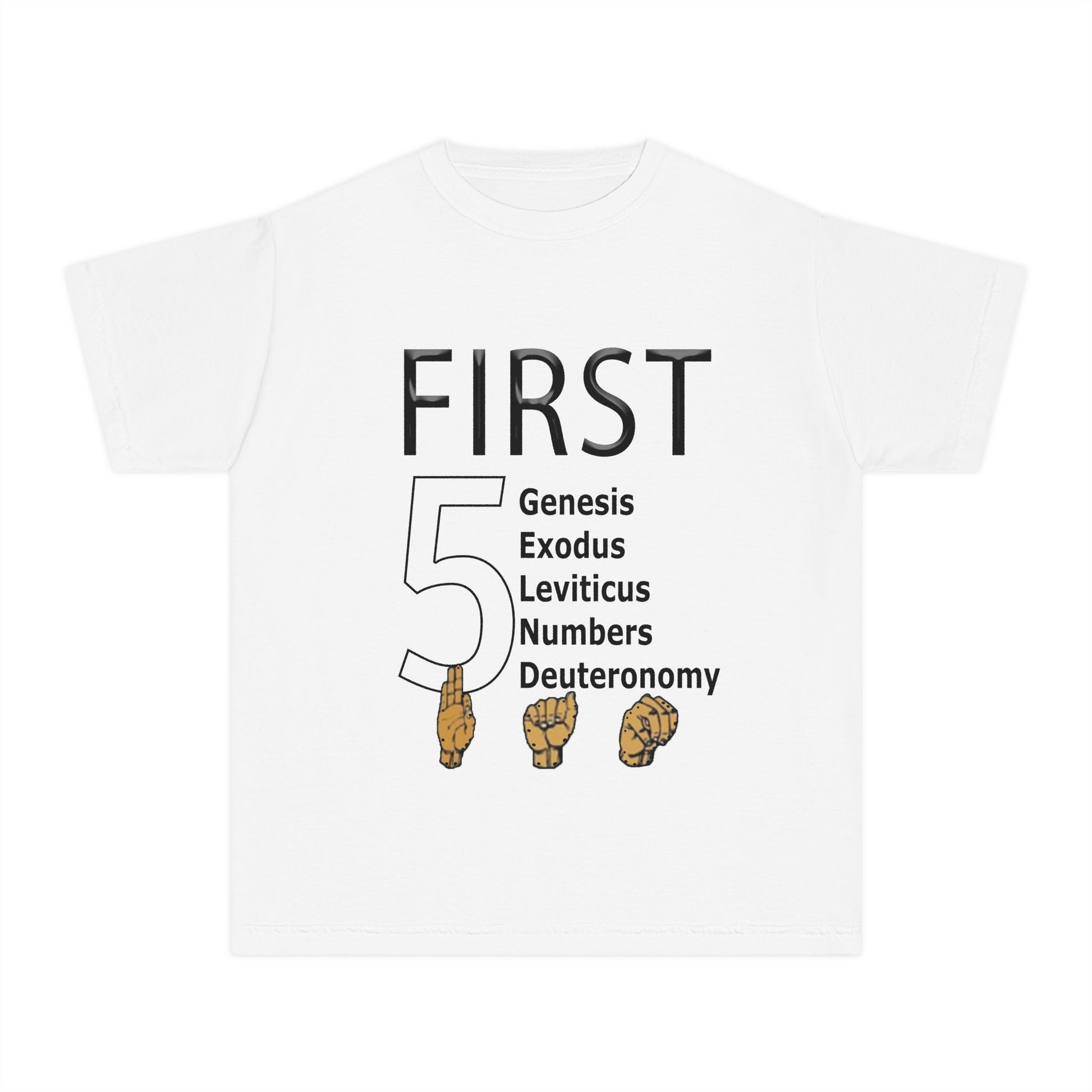 Youth Tee — "First 5" Bible Books Design (Genesis to Deuteronomy)